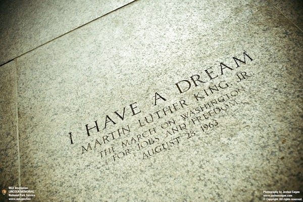 I have a dream that my four little children will one day live in a nation where they will not be judged by the color of their skin but by the content of their character.