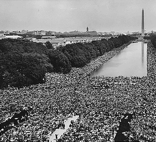 On August 28, 1963, some 250,000 people joined The March on Washington for Jobs and Freedom, one of the largest civil rights demonstrations in US history. Marching for social and economic equality, the crowd stretched from the Washington Monument to the Lincoln Memorial. Dr. Martin Luther King, Jr. delivered his "I Have A Dream Speech" on its steps. The march influenced Congress to pass the Civil Rights Act (1964) and the Voting Rights Act (1965).