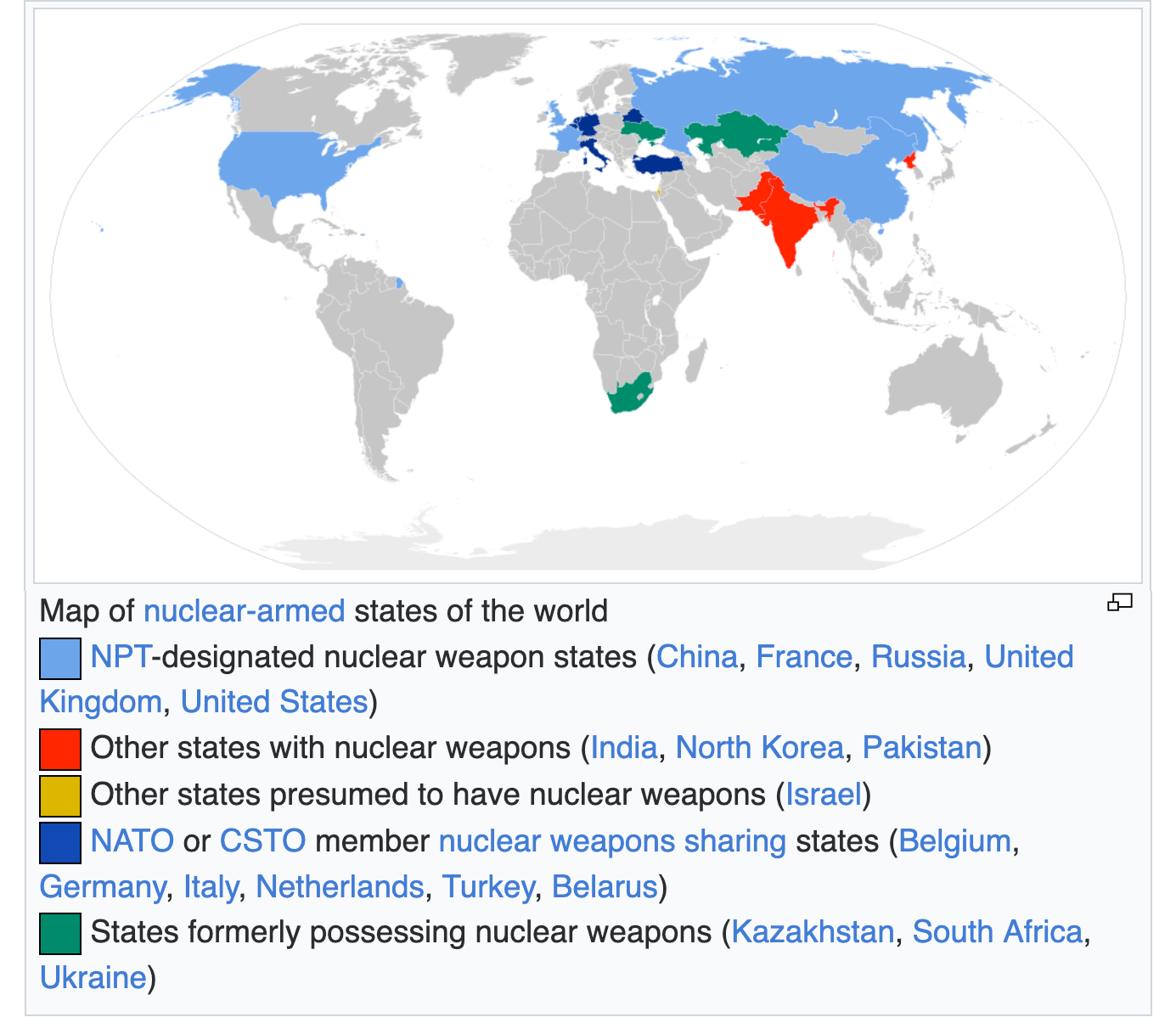 an attempt to prevent the use of nuclear weapons in the future. International agreements and the destruction of stockpiles is more crucial than ever. Proliferation now includes these states (some of which have declined possession and are now former nuclear states):