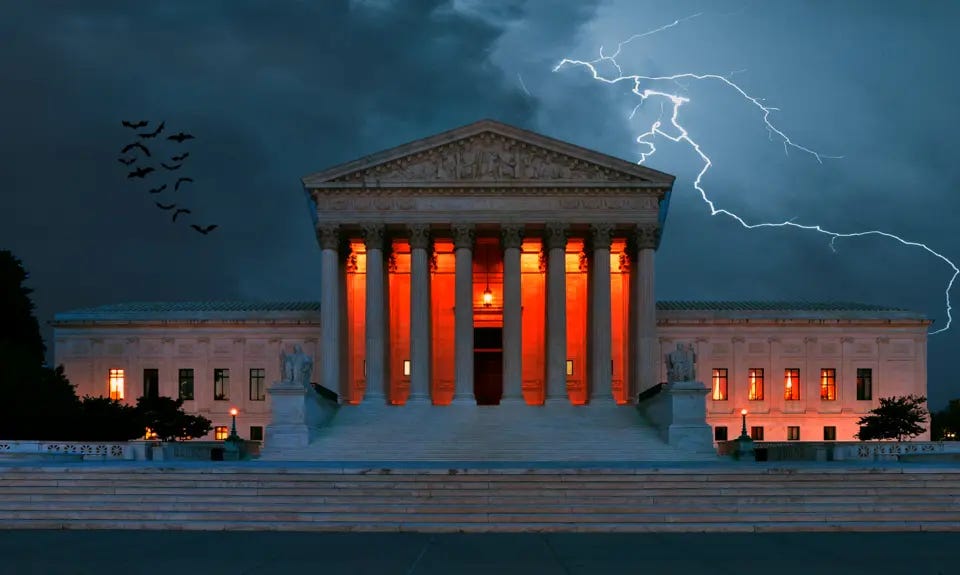 If you see a portal to Hell in the Greek revival facade of the Supreme Court building. you can’t be faulted. Given the dirty decisions the Supremes have made this term—following the women’s rights-slaughtering reversal of Roe v Wade—your perception is spot on. But this court’s Road to Hell didn’t even try to make a show of being paved with good intentions.
