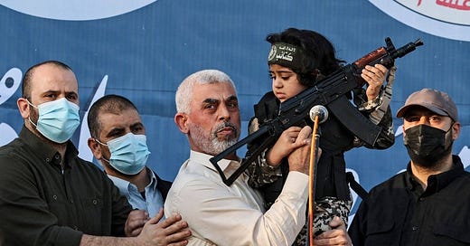One of Sinwar’s specialities was entraining Palestinian children early to hate Jews, blame Israel for everything, and be willing to throw their lies away for his ambitions.